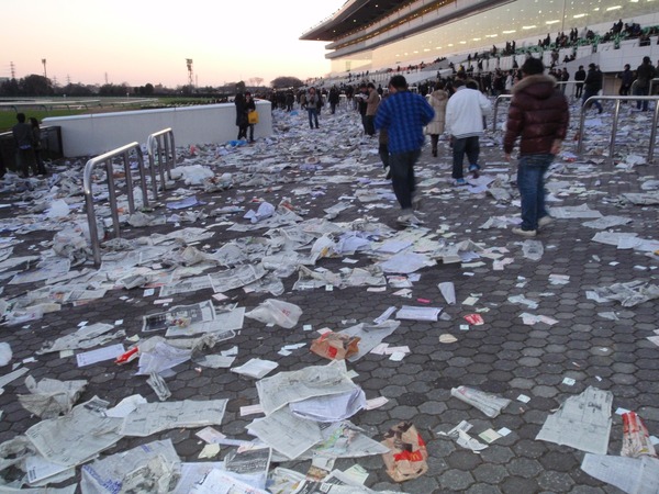 外れ馬券や競馬新聞を空中に放り投げる習慣がある