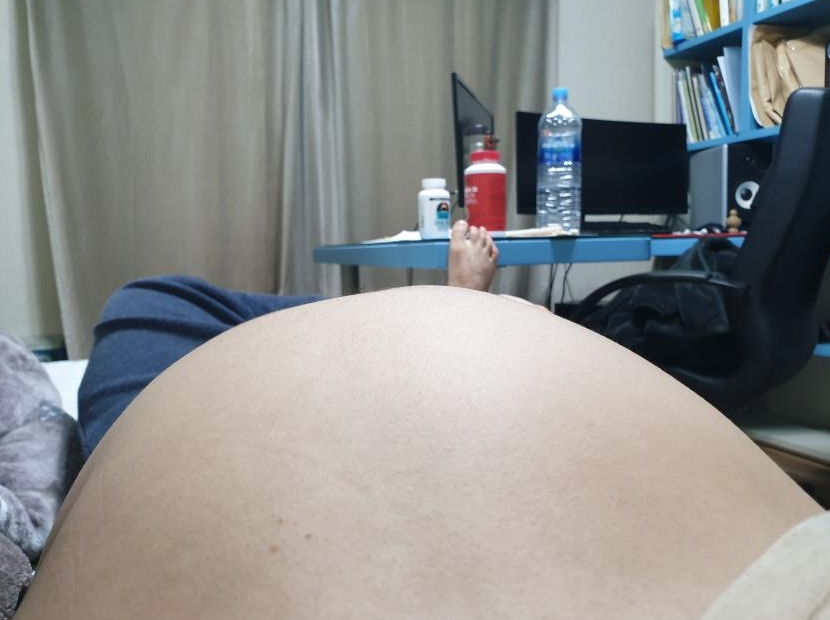 마비로 인한 운동부족으로 복부팽창이 마지막 사진.