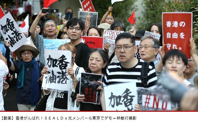 司法の独立を守ろうと大規模デモで政府に抗議している香港の若者らを応援しようと、安保法制への反対活動を展開した学生団体「SEALDs(シールズ)」の元メンバーらが13日、都内で集会を開いた。数百人が集まり、「香港がんばれ!」と声を上げた。