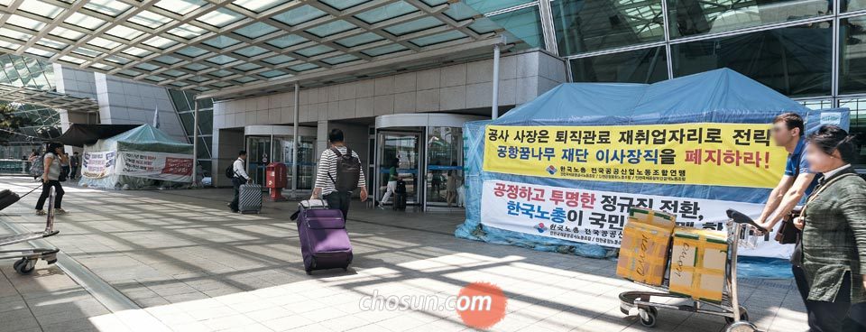 1日20万人が行き来する韓国最大の関門空港から二大労総が凶物なテントを設置して対峙しているところだ。ムン・ジェイン大統領が2017年5月に仁川国際空港で「非正規職ゼロ(0)」宣言をしてから2年も経ったが、まだ正規職転換に関連する対立が解けずにいるからだ。
