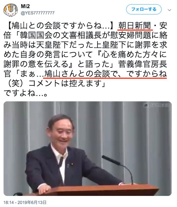 https://anonymous-post.mobi/archives/8885菅官房長官「鳩山氏との会談なのでコメントは控える」