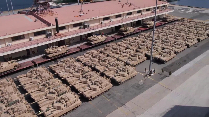 대량의 미군 戰車와 장갑차가 부산항에 하역