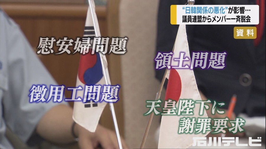 悪化する日本と韓国の関係。その影響か、石川県議会議員で作る「日韓議員連盟」から10人以上が一斉に脱会していたことが分かりました。