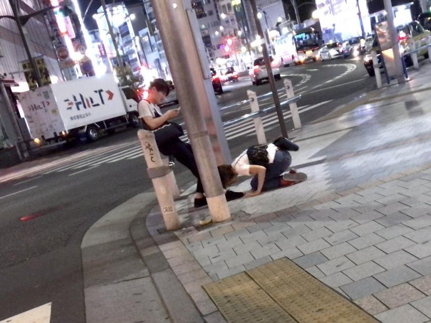 韓国男児は恥ずかしくないのか?皆が見てる前で足元にひざまずいて?