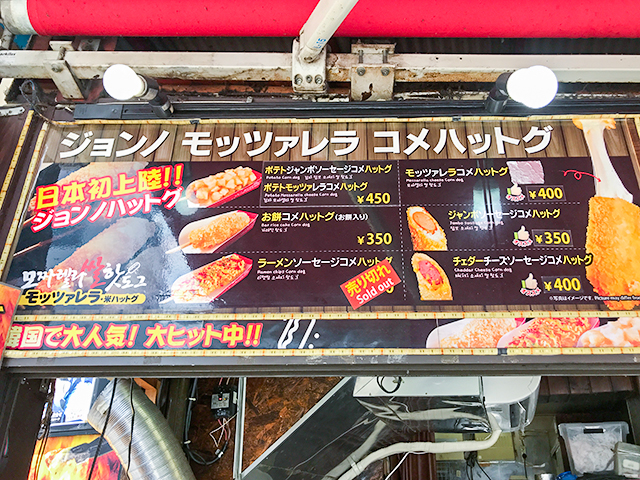 それ、大久保のドンキの近くの店かな。誰も並んで無かったけど。大阪だけど、韓国のホットドッグ?の店に行列が出来ている所を見た事が1度もない。