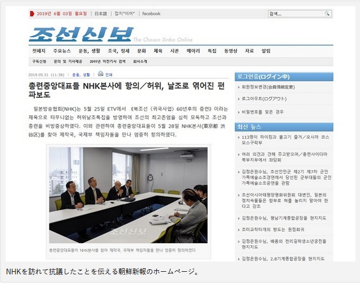 朝鮮総連の代表者が、5月28日に東京のNHK本局を訪れ、在日朝鮮人の帰国事業を扱った番組を「虚偽とねつ造宣伝だ」と抗議していたことが分かった。朝鮮総連の機関紙「朝鮮新報」が5月31日付のウェブ版(朝鮮語)で報じた。(石丸次郎)