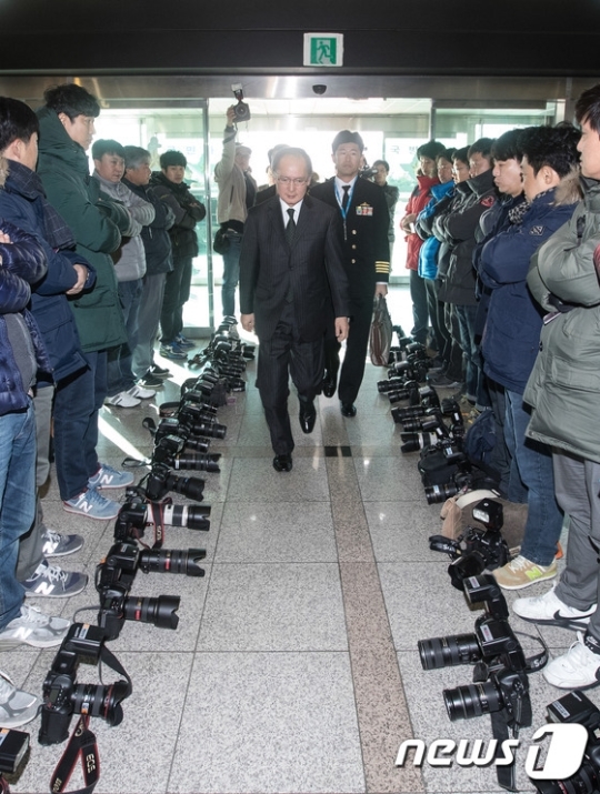 【ソウル=ニューシス】抽象鉄記者= 23日、ソウル龍山区国防部で韓日軍事情報保護協定に署名するために入場する長嶺保正(長嶺安政)駐韓日本大使の周りに写真記者がカメラを置いて取材拒否をしている。