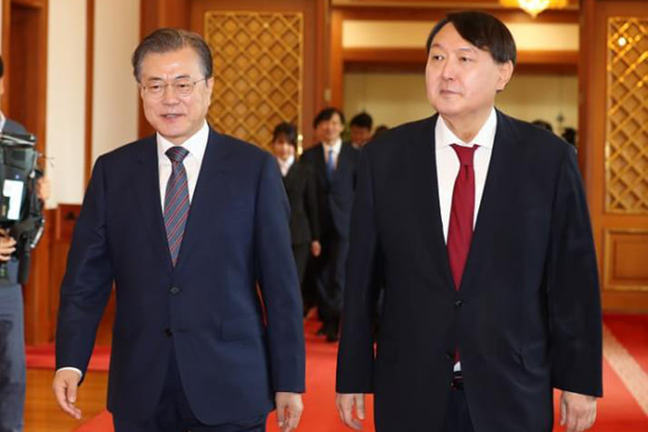 総長就任の折に文大統領は「青瓦台であれ、政権与党であれ、生きている権力に不正があれば、厳正に捜査せよ」と述べたが、尹総長はこれが後に嘘だと明らかになるなど、そのときは思いもよらなかった。