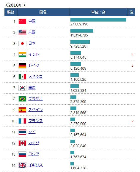 自国で生産出来れば人口が多い国は台数が伸びるよ。