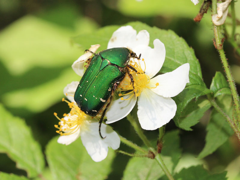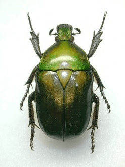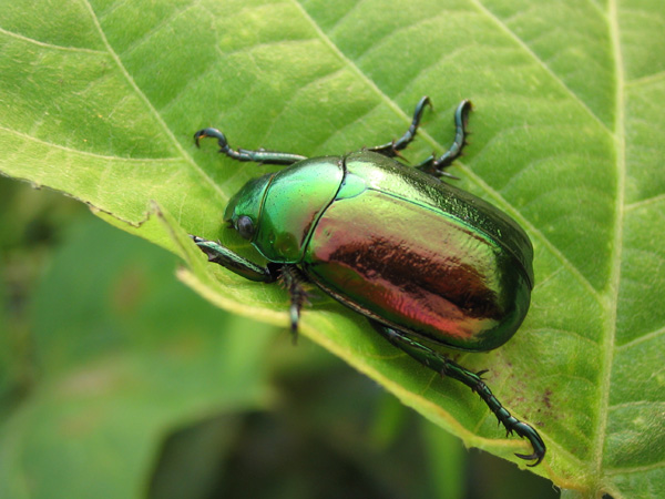コガネムシの色は、非常に美しい金属的な光沢をもつ緑色です。