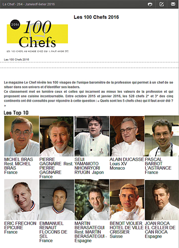星付きシェフが選ぶ世界のトップ100、日本人は14人ランクイン