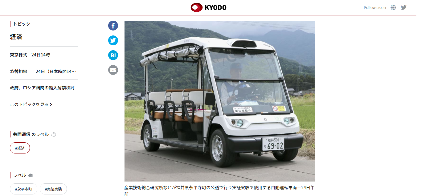 【自動運転6カ月実証実験、福井 期間国内最長】