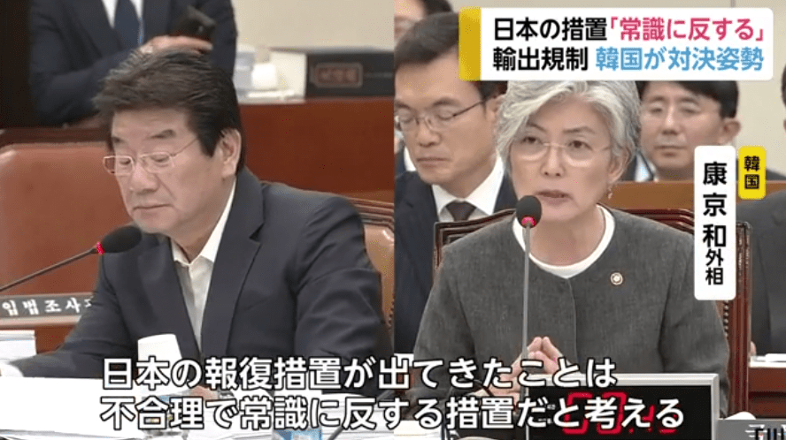 韓国の康京和(カン・ギョンファ)外相は、「日本の報復措置が出てきたことは、不合理で常識に反する措置だと考える」と述べた。