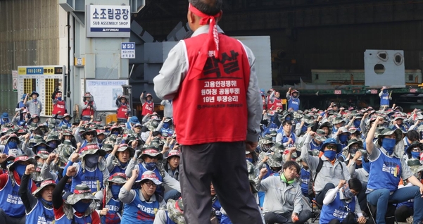 会社の物的分割(法人分割)株主総会の無効を主張してストライキを行っている現代重工業労組員数百人が24日、工場に集まっは設備と備品を壊したことが分かった。労組員の暴力行為が続いた現代重工業側は26日、社員名アピールを出して不法・暴力行為を止めてくれと要求した。これに対して労組側は「指導部の指示に反する暴力行為が出ており、個別に独自の調査している」と述べた。