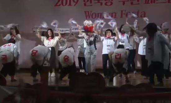 自由韓国党は26日、ソウル瑞草区のホテルで、全国の女性党員1600人余りが参加した中で「2019ウーマンフェスタ」を開催した。このイベントは黄教安韓国党代表とナ・ギョンウォン院内代表など指導部が大挙参加した。問題になったお尻ダンスは2夫人」しようと別の長期自慢」で出てきた。慶南派閥女性党員は舞台に上がって歌を歌って客席に向かってお尻を向けた。以後、突然ズボンを下ろした。中支え着白の下着円赤い文字で「韓国党の勝利」が書かれていた。女性党員は客席に字がよく見えるようにお尻を突き出したりして楽しく振った。別名ヒップダンスを踊っ党員の前には「総選挙慶南女性が先頭に必勝します」という立て札を持った党員が立っていた。公演が終わった後、黄代表は「今日したことを忘れずに、もう少し練習して、本当に素敵な韓国党公演団を作ってくれるように願う」とし「今日出場選手団の中で上記の5チームはイベントごとに来て公演をしてくれて、6などの後は、1年の練習しろ」と激励した。