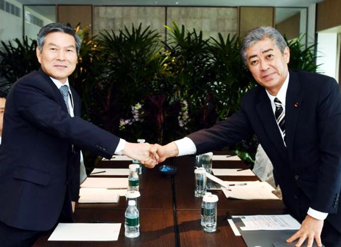 文大統領と安倍総理大臣はG20の会場で短い時間だったが(すれ違っただけ)笑顔で会談(挨拶)した。