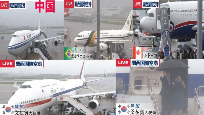 この日大阪に到着した首脳のうち、中国やブラジルの首脳は屋根のあるタラップを、トルコやベトナムの首脳は開放型タラップを利用した。>>3