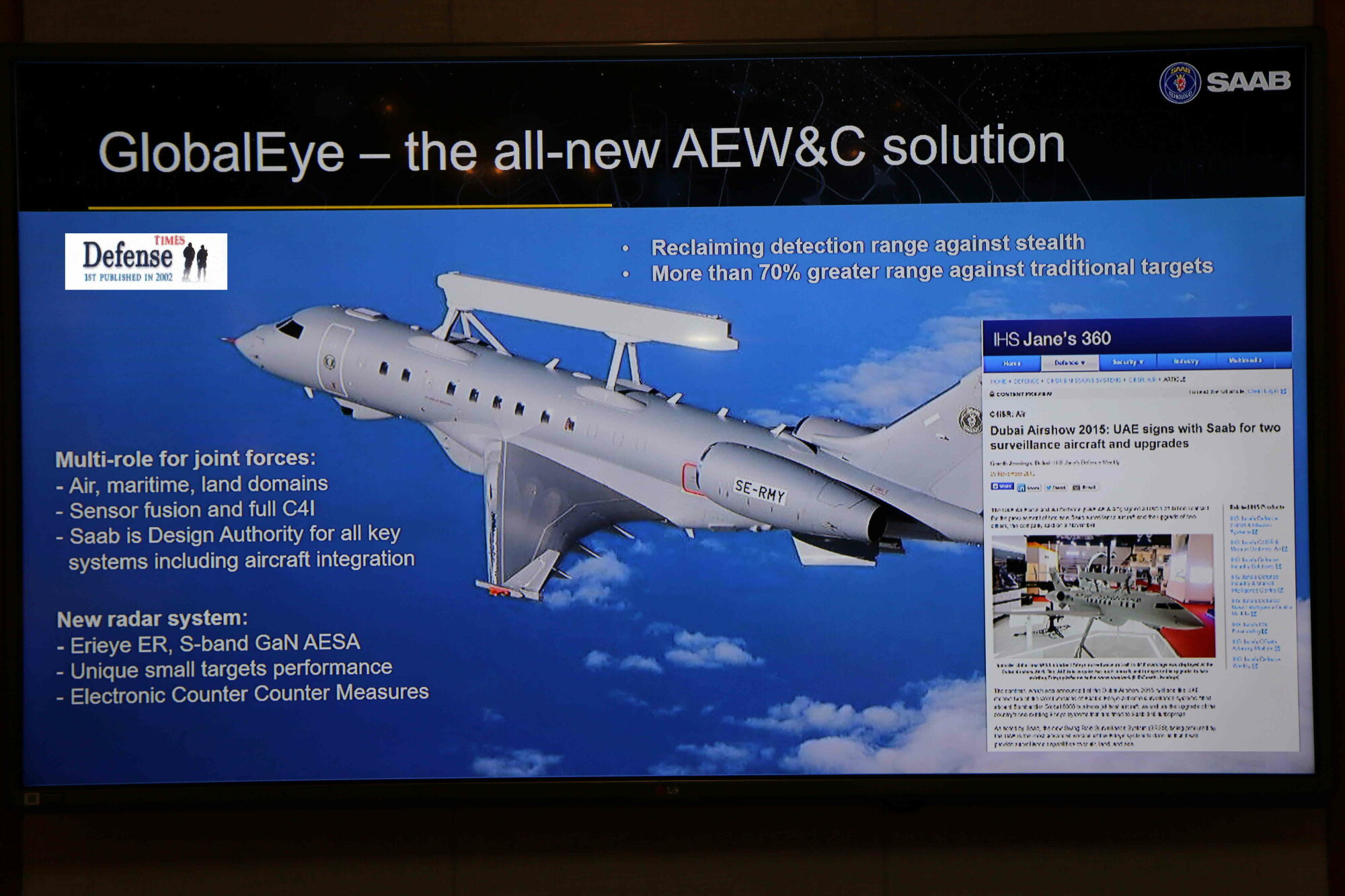 SAAB 서울서 기자회견 "스텔스전투기 탐지 가능 ,해상서 표류하는 소형 목선도 잡는다"