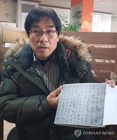 (金海=連合ニュース)ジョンハクグ記者= 1919年金海張裕地域万歳運動の過程と火付け役の投獄・裁判の過程などを母親が来訪歌詞の形式で記録した貴重な資料」ギムスンテ万歳運動家」(あるいは子所感が)元を訪れた。