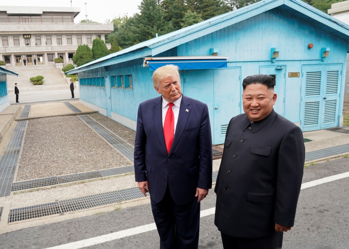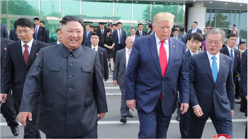 韓国のムン・ジェイン大統領は、30日、ソウルでアメリカのトランプ大統領と首脳会談を行ったあと、そろって南北の非武装地帯を視察したのに続いて、軍事境界線にあるパンムンジョム(板門店)で、トランプ大統領とともに北朝鮮のキム・ジョンウン(金正恩)朝鮮労働党委員長と面会しました。
