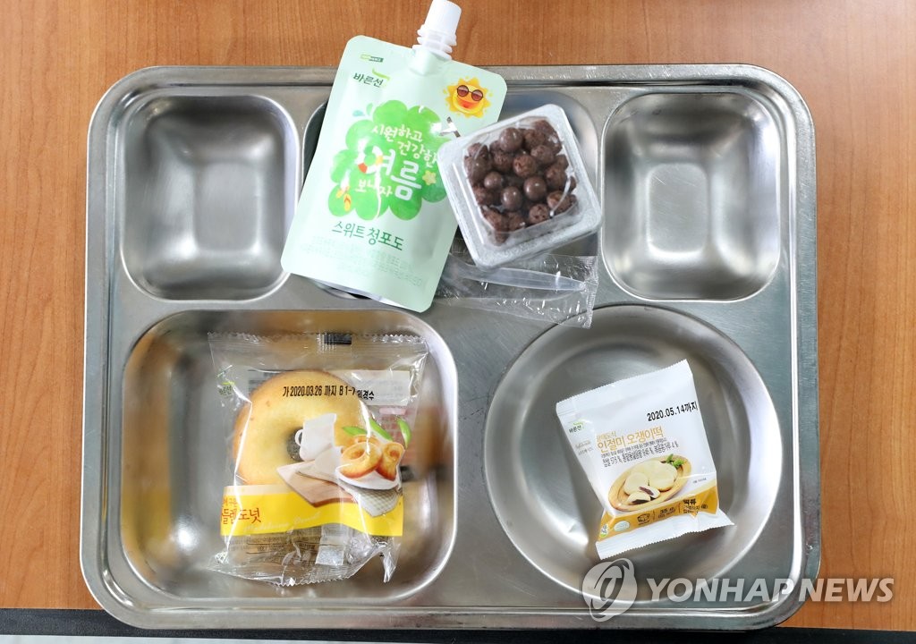 この日正午に、ソウルのある小学校給食室昼休みの風景は、いつもと違って見えなかった。パンとジュースを受けた子供たちは、三々五々集まって昼食を食べた。