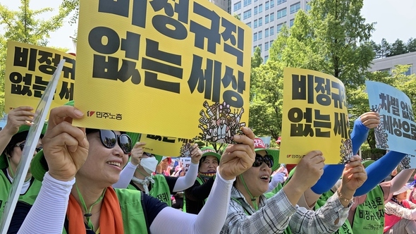民主労総は前日のソウル都心大規模集会に続き、4日には全国各地で文在寅(ムン・ジェイン)政府の「公共部門非正規職労働者の正規職化約束の履行」を要求する労働者大会を開催した。非正規職の撤廃と労働弾圧も中断を求める学校非(正規職全面ストライキが二日目に突入し、全国2177校で給食中断事態が起こった。