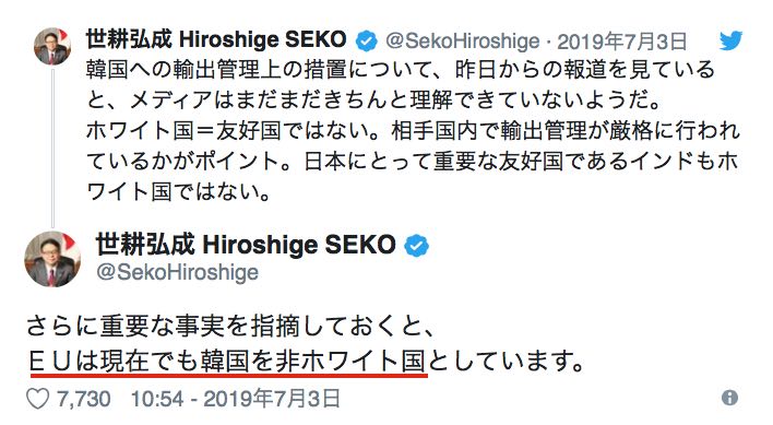 ・韓国への輸出管理上の措置について、昨日からの報道を見ていると、メディアはまだまだきちんと理解できていないようだ。 ホワイト国=友好国ではない。相手国内で輸出管理が厳格に行われているかがポイント。日本にとって重要な友好国であるインドもホワイト国ではない。