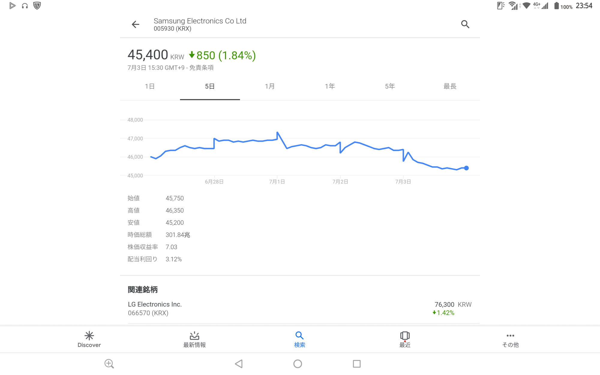 下りが低いのはまだ制裁は無いと日本を舐めてるのか、サムスン愛に溢れた個人投資家が買い支えているのか、いずれにせよこれからジリジリ下げるだろうね。