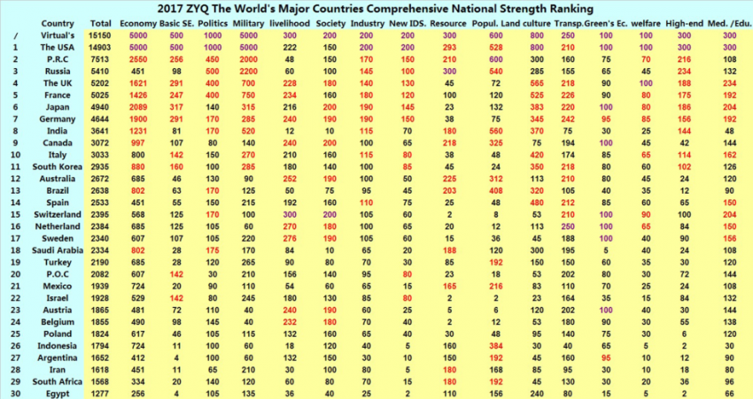 経済は半分以下だね項目をポイント化して国力順位を決定する行為。