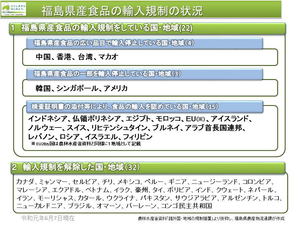 예를 들어서 원전 사고가 났던 후쿠시마 지역 농산물의 경우에 우리는 고사리나 버섯 같은 27종류만 수입을 막고 있습니다.