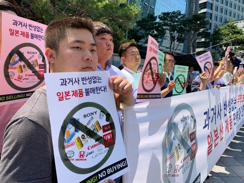 総連合会はこの日、ソウル鍾路区の日本大使館前で開いた記者会見で、「輸出制限措置は、日本の侵略行為で発生した慰安婦・強制徴用賠償問題に対する報復」とし「中小商人と自営業者は過去の歴史を反省しないで、貿易報復を画策日本製品の販売中止に突入する」と述べた。
