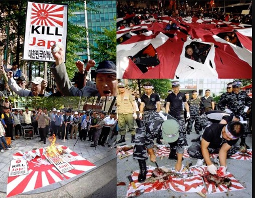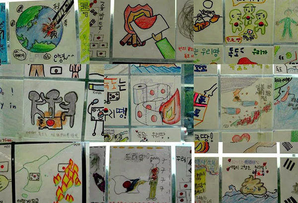 저의 학생시절에는 저런 그림을 그린적이 없습니다. "하지만 항상 일본놈은 나쁜놈이다"라고 교육을 받아왔습니다. 그리고 선생들은 쉽게, 쪽바리라는 단어를 사용합니다. 조선인은 전혀 자신이 혐일을 하고있고, 나쁜짓을 한다는것을 인식못합니다. 저런 그림이 있는것은, 이상한 일이아닙니다.>>98김영삼시대부터 식민사관을 개선하자고 극단적인 반일교육을 시작한것 같다.