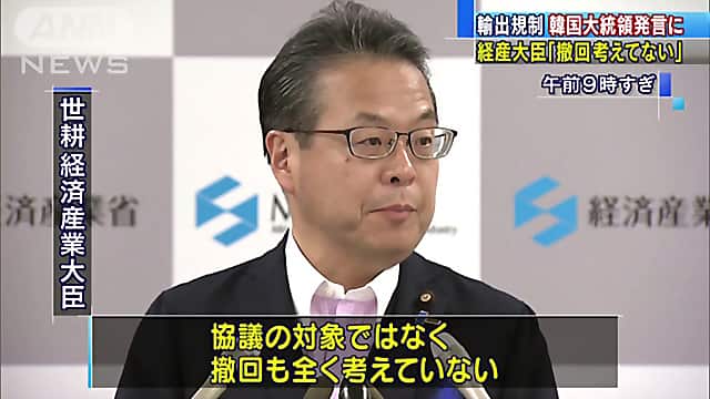 世耕大臣 韓国大統領発言に輸出規制「撤回考えず」