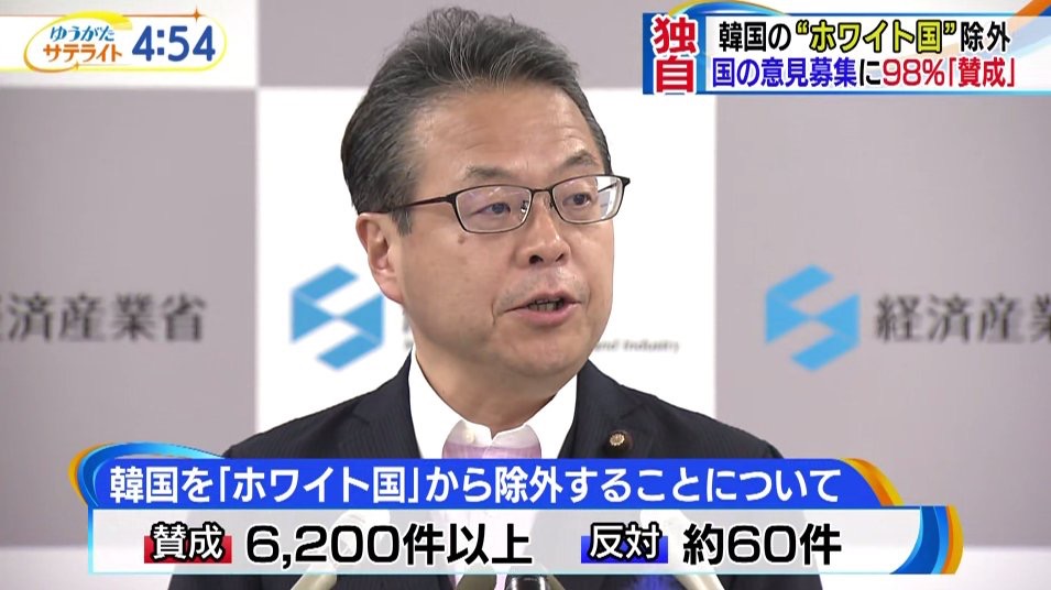 韓国を貿易上の優遇措置が適用される「ホワイト国」から除外するかどうかについて、経済産業省が、国民から意見を募ったところ、賛成が98%以上に上っていることがテレビ東京の取材で分かりました。
