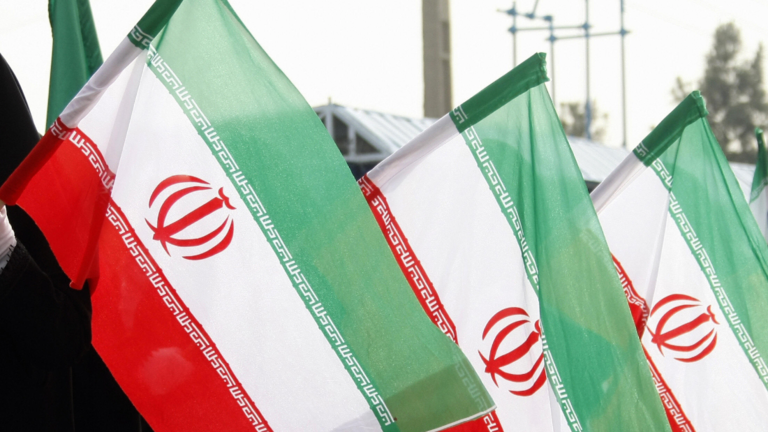 たなびくイランの国旗。これは、中東・ホルムズ海峡で拿捕されたイギリスのタンカー「ステナ・インペロ」です。
