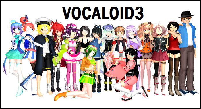 いちおう、たぶん今年前半ぐらいまでのボカロ勢揃いでこんな感じだろうか?スレチだが、GUMIの公式キャラはゆうきまさみの絵のハズなのに、違う絵師のキャラをメインのように扱うのは反則だと思うの。