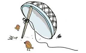 酒に酔った雀が落花生を枕に昼寝する時を見計らってザルを落とす