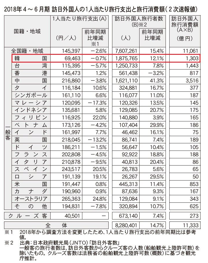 民泊や安宿で宿泊し、コンビニ飯を食い漁って少額しか消費しない国なのにね。