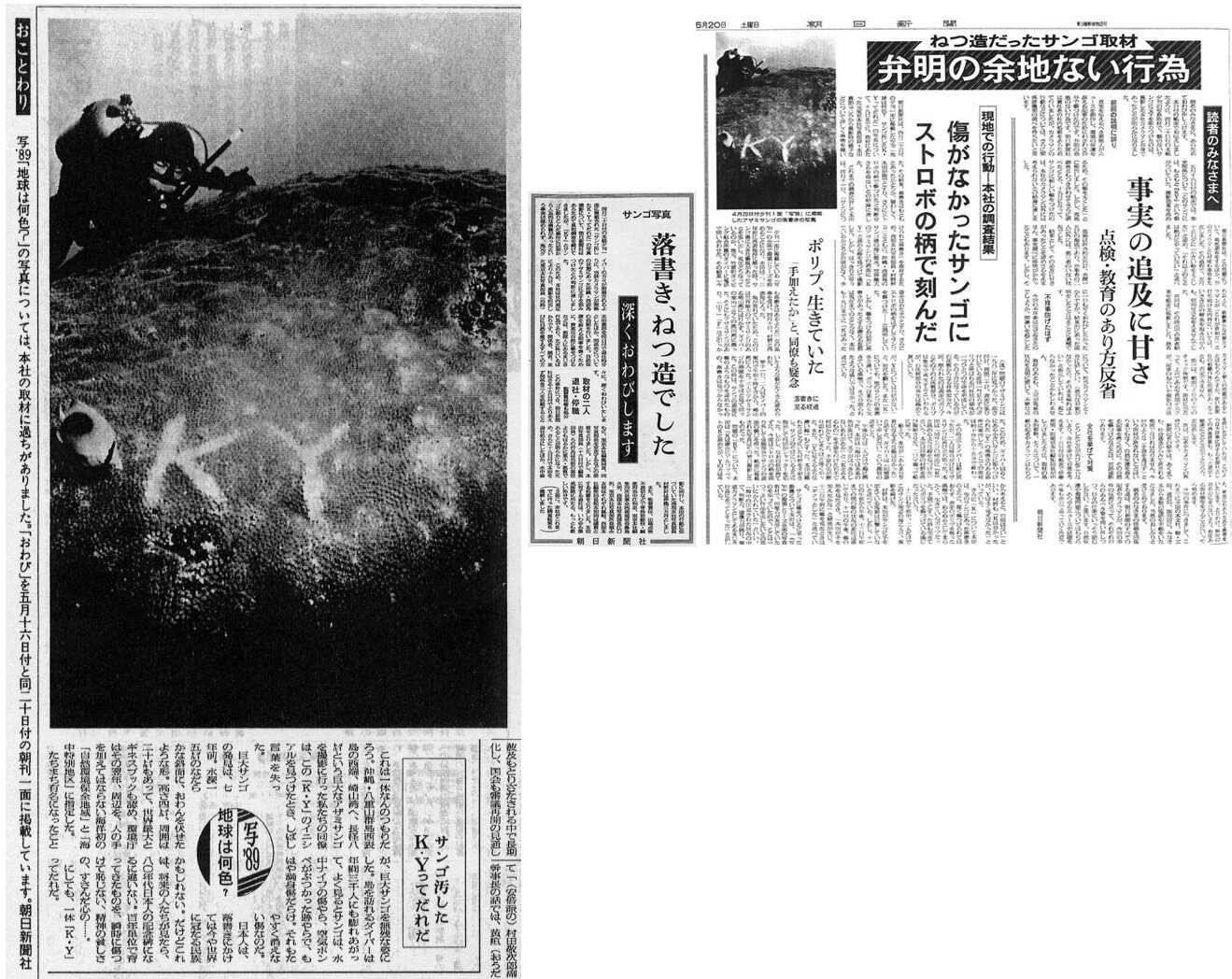 朝日新聞の全面広告で、貴重な珊瑚礁にKYと