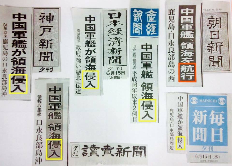 中国が日本の領海に侵入しても朝日新聞だけが中国の船が領海を航行したと書いた。