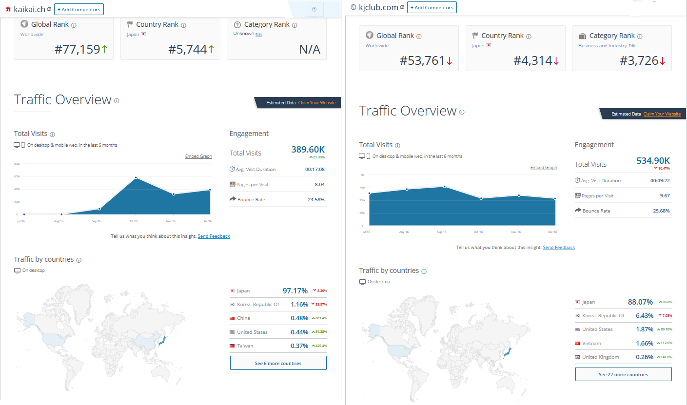 これを見る限り、kaikai.chへのアクセスが増加傾向で、KJCLUBが減っていることがわかります。