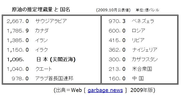 近年日本の領海内では油田、ガスなど発掘されている