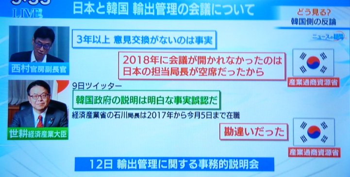 日本経産省「韓国側が一方的に延期をし、行われていなかった。」