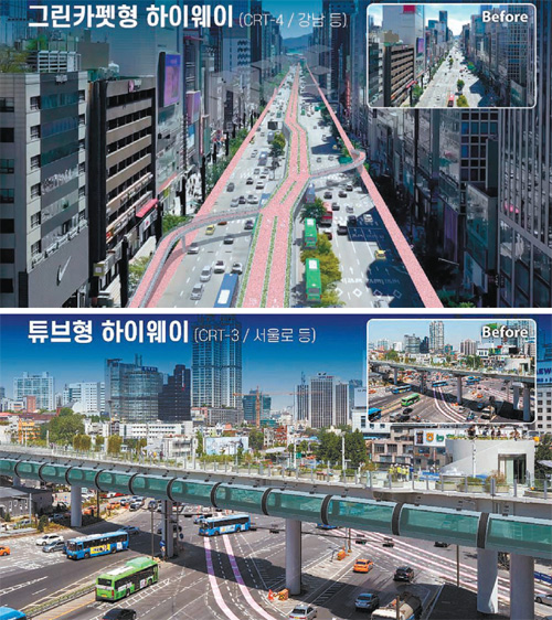 このため、車両・歩行者と分離された「自転車ハイウェイ(CRT)」を構築する。港の上のスペースや列車の地上駅舎の上部空間を活用したデンマークのコペンハーゲン、英ロンドンのようにソウルならではの自転車幹線網を作る計画だ。地上構造物や道路の上部などを活用する「キャノピー型CRT」「チューブ型CRT」、都心緑地空間として活用可能な「グリーンカーペット型CRT」などを推進する。また、車道の高さだった路傍の自転車道を歩道の高さに造成して、自転車道と車道を分離する「歩道型CRT」も検討することにした。