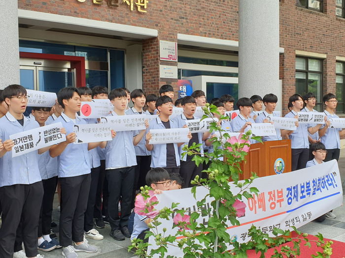 일본의 무역보복으로 일본제품 불매운동 등이 잇따르고 있는 가운데 광주지역 고교생들이 직접 나서서 ‘일본제품 불매운동’을 펼치기로 다짐했다.