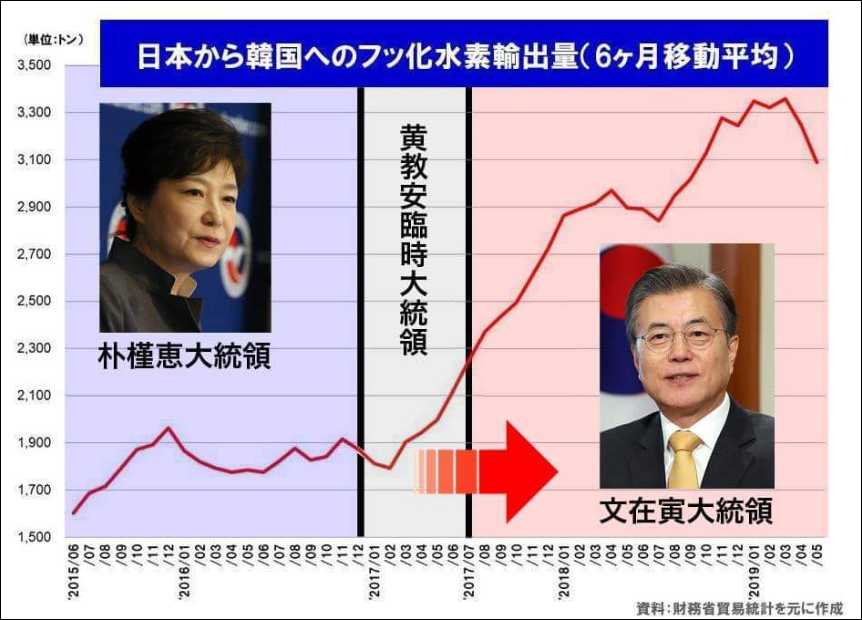 ①近年、過去の実績を遥かに超える量の「フッ化水素」の輸出が続き、また輸出量の30%にもなる「フッ化水素」が行方不明になっているのが判明。