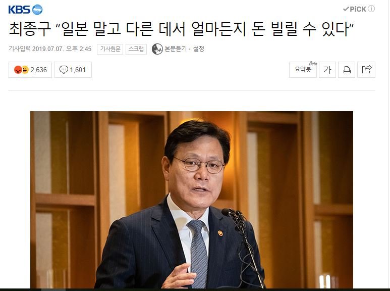 최종구 “일본 말고 다른 데서 얼마든지 돈 빌릴 수 있다”