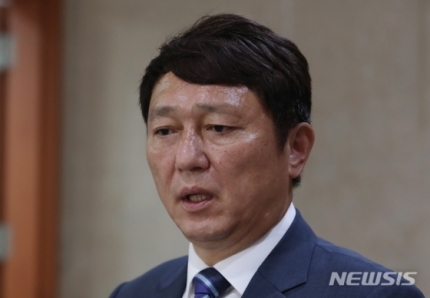 民主党日本経済侵略対策特別委員会の崔宰誠 総書記が19日、ソウル汝矣島の国会で取材陣の質問に答えている。
