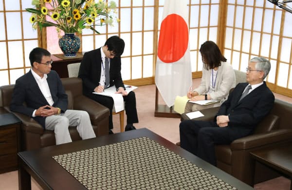 河野外相は19日、南大使を外務省に呼び、自国が提案した「第3国仲裁委員会」の設置期限(18日)までに、韓国が回答していなかったと抗議した。