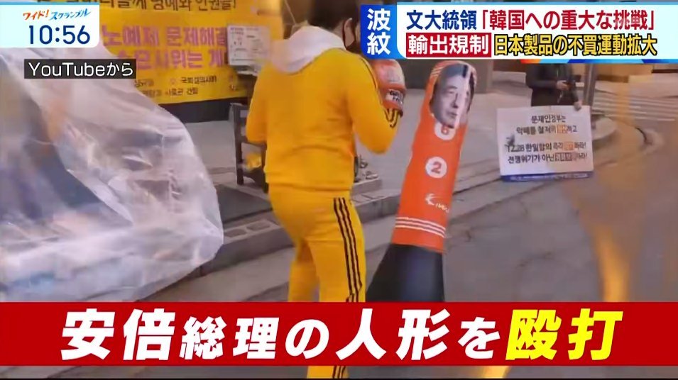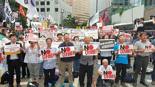 この日の午後6時から定義記憶連帯、民主労総、全農など97団体会員が平和の少女像の周辺で集会を開き、日本の経済報復に抗議した。彼らは「安倍晋三首相が強制徴用賠償判決に貿易報復に答えた」とし「一日も早く過去の歴史について謝罪しなければならない」と主張した。